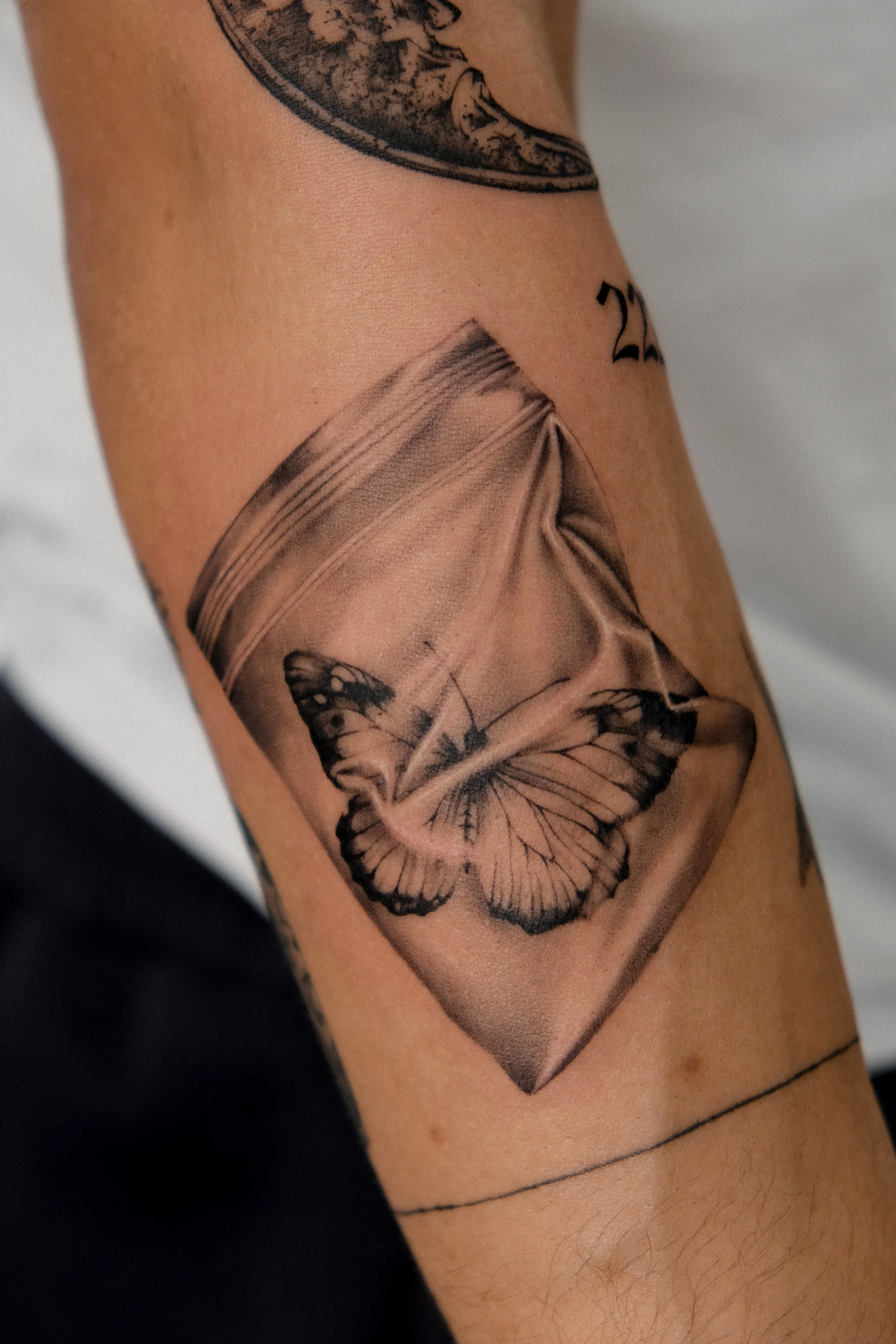 “I was super nervous about getting a tattoo since it was my first one, and the design I picked wasn’t an easy one to replicate—but Angel absolutely nailed it. He’s incredibly skilled and clearly passionate about his work. I really appreciated how knowledgeable he is about tattoos and art in general, and how much care he put into getting every tiny detail just right to make the piece look alive”